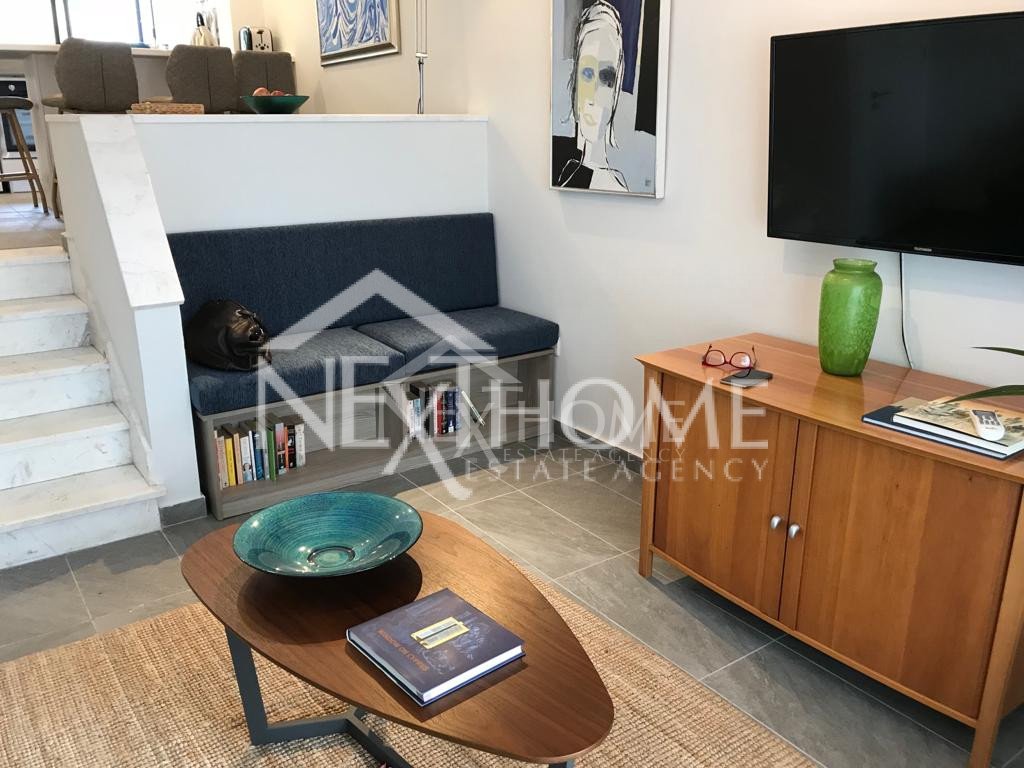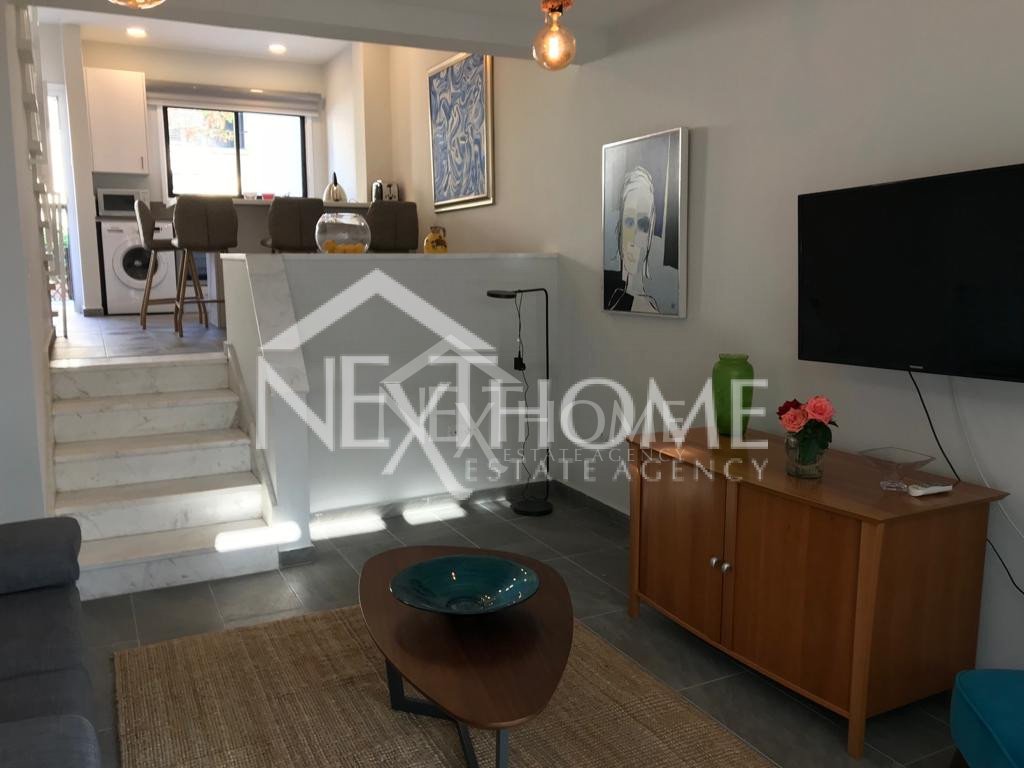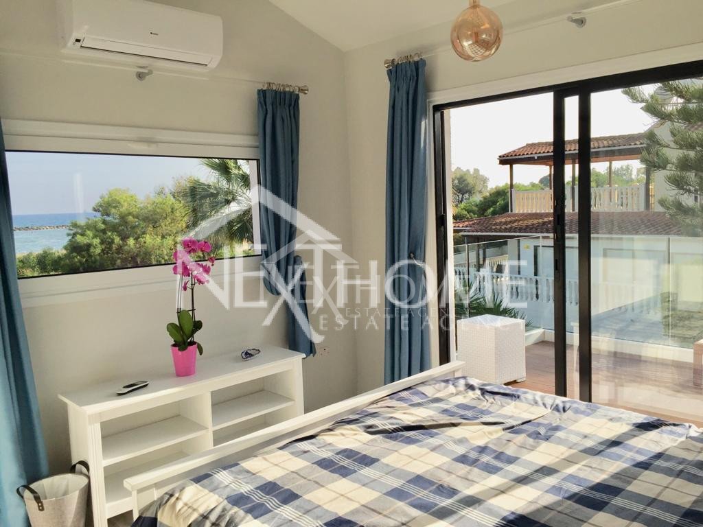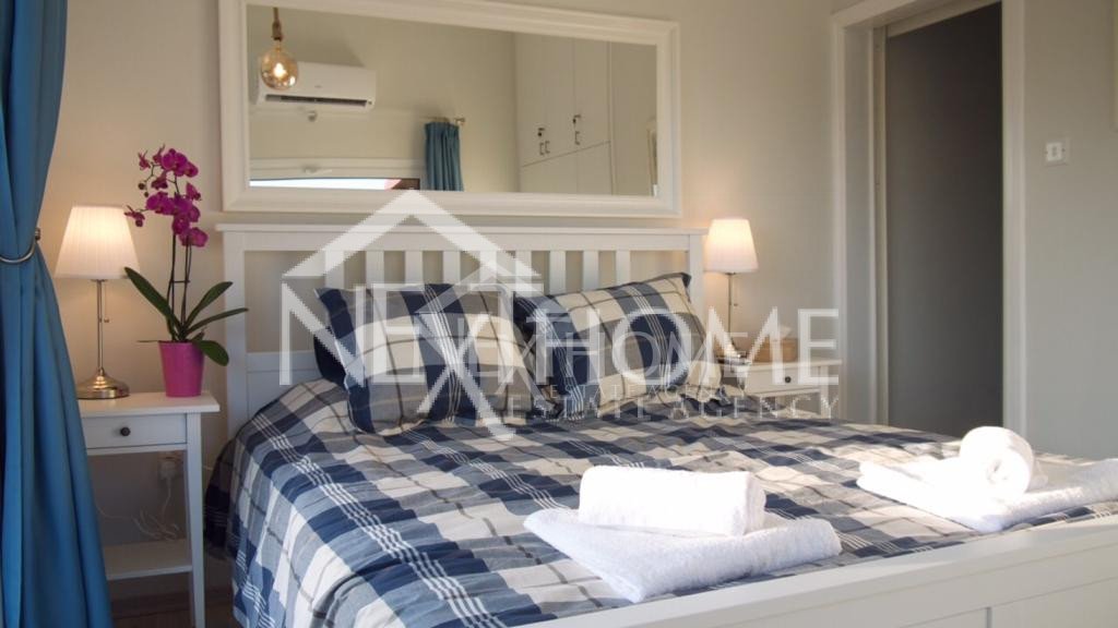 House for sale fully furnished fully renovated in Dhekelia in Larnaca Bay. On the ground floor the property comprises of an open space layout with open plan kitchen with electrical appliances, with an island doubling as a dining table and living room, guest WC and brand new air-conditioning units in every room. The second storey hosts 2 bedrooms, 1 bathroom with walking shower, 1 WC, a decent size veranda with panoramic sea view. Externally it comprises of extensive garden and veranda with sitting area.