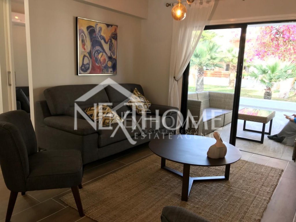The complex itself is very centrally located in the main tourist zone of Larnaca and boasts mature gardens, great sea views, a very safe beach, as well as safe areas for children to play in. There is a well-stocked 24/7 supermarket and a coffee place walking distance and a great number of bars, good restaurants and diving/water sport shops along the same road on both sides.