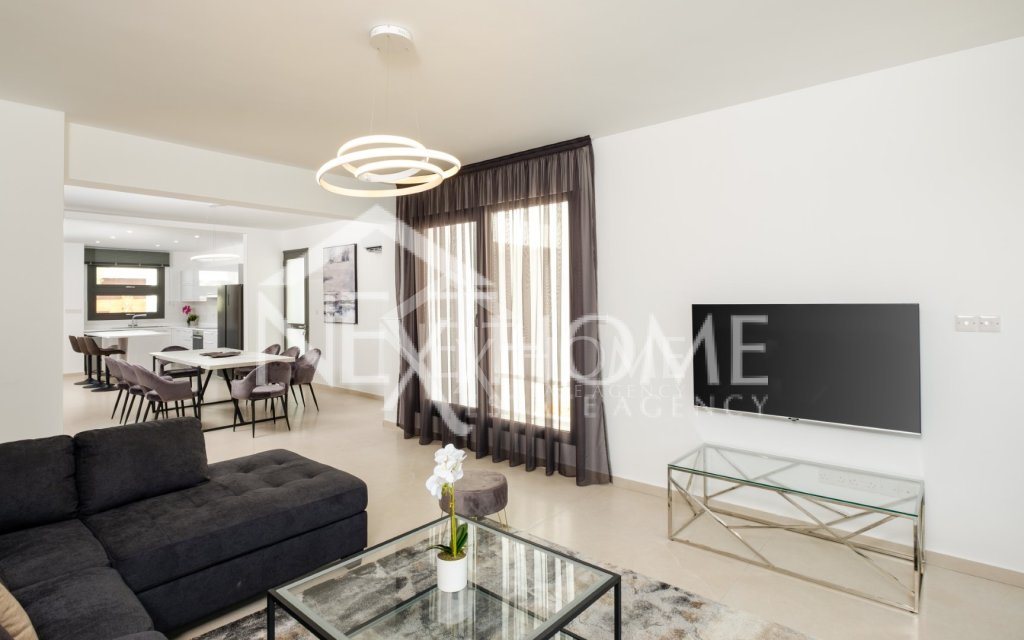 Four Bedroom House with modern design for rent in Livadia area, Larnaca. The property consists of an open plan kitchen and living room with dining area, four bedrooms, four bathrooms, private swimming pool, covered veranda, large garden, barbecue area, roof garden and covered parking.