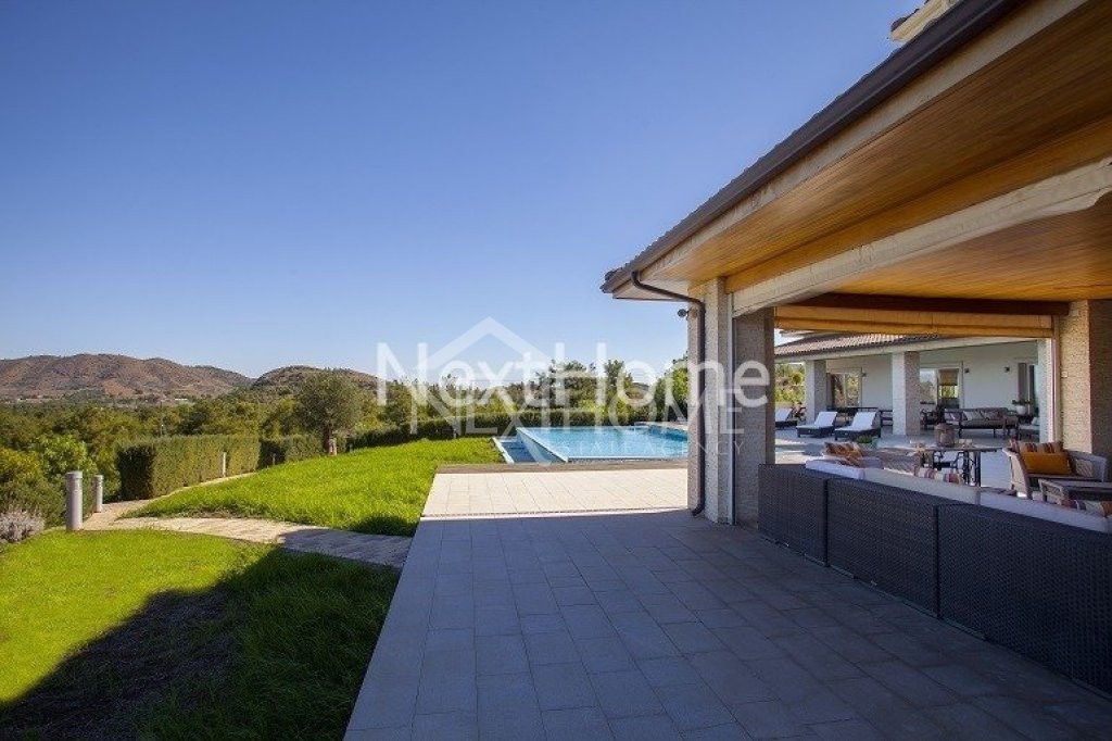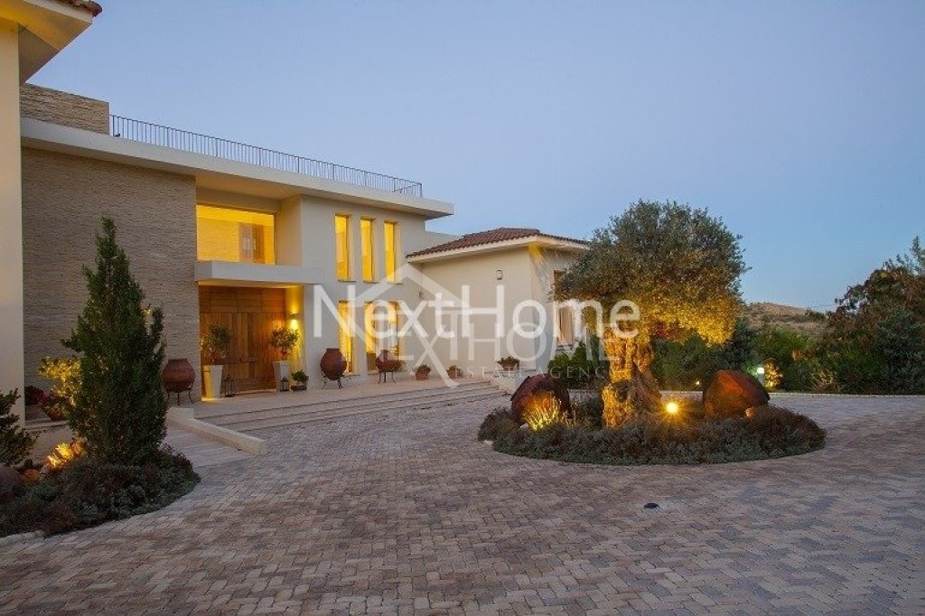 Imagine a private driveway alongside pine trees. You go through the large electric gate and discover this amazing Villa on a hill. This very fine luxurious residence, located just 15 minutes from Nicosia Capital and Larnaca and just 30 minutes from Limassol, in the center of the south side of the island.
