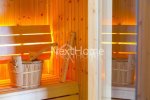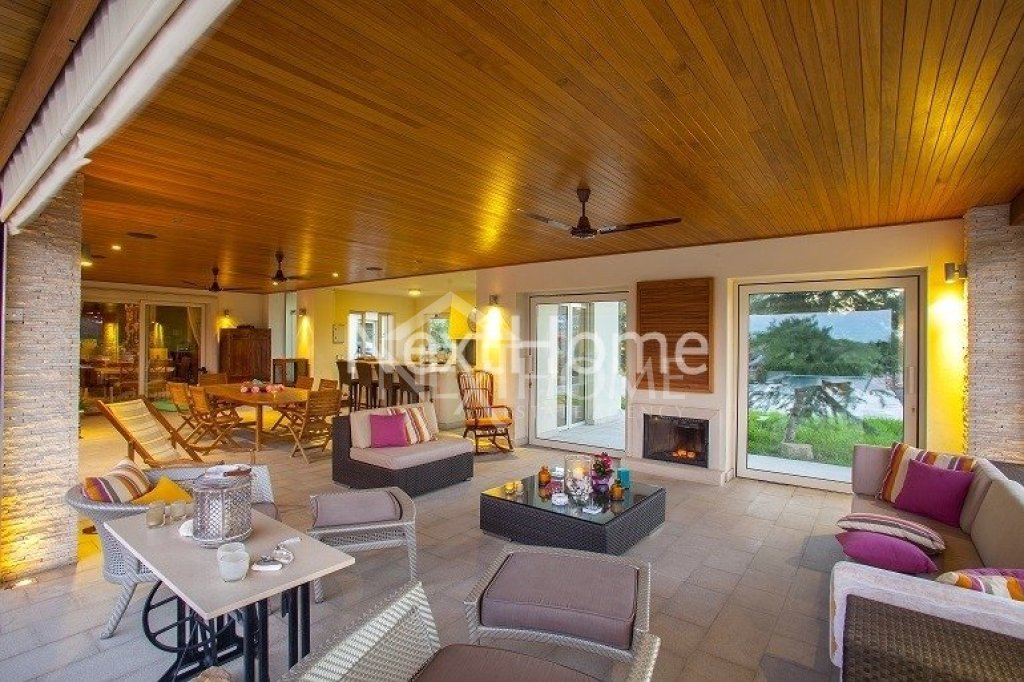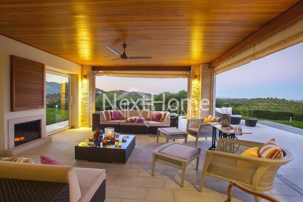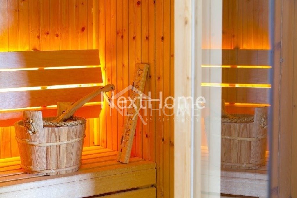 Lying in a large piece of land with a master piece garden, offers you an elegant, understated décor, Interior iroko wood walls, luxury high ceilings, antique and wrought expensive designed furniture, bright, pastel colors. You are overwhelmed by a feeling of well-being and richness. The covered terrace invites you to take things easy, and comfortably lying on your sun lounger, you are rocked to the song of the cicada before taking a refreshing dip in your pool or in the winter time by the fireplace enjoying the incredible views of green forest next to a traditional village. At the first floor it consists of four bedrooms and the master bedroom with a large closet room, sauna, Jacuzzi and large shower.