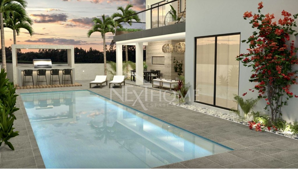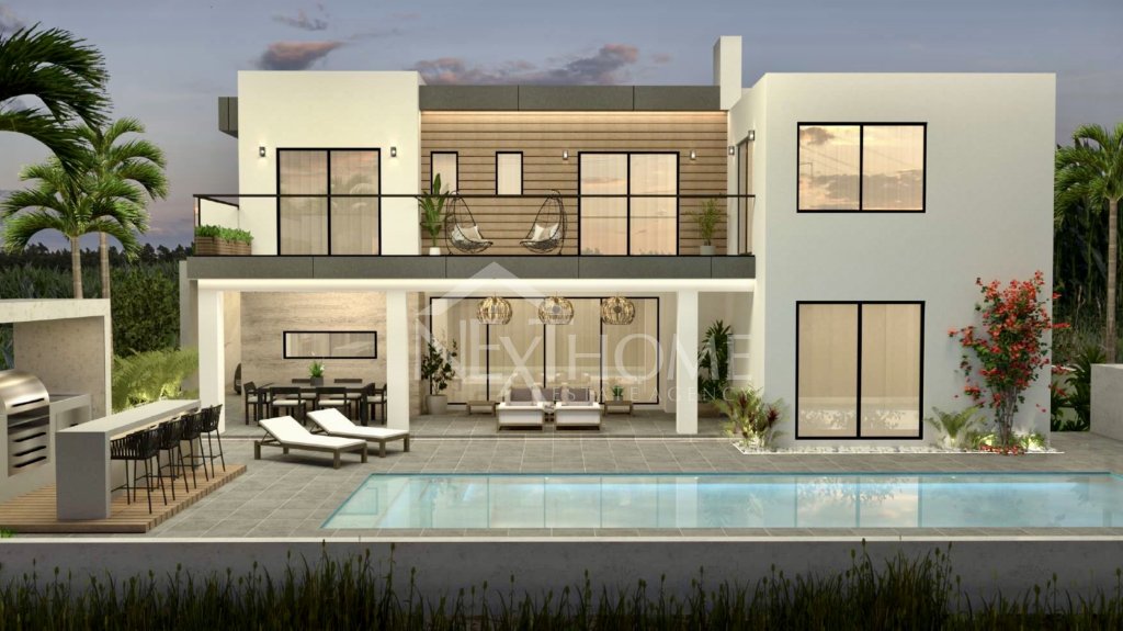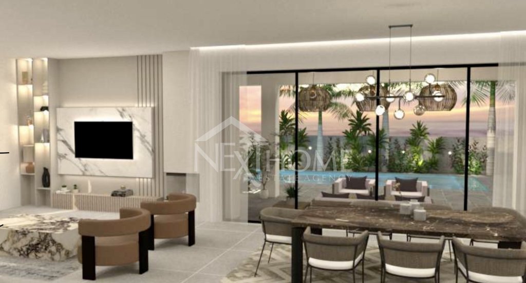 The villa features 259 m² of internal covered areas and 40 m² of covered verandas, with a bright open-plan layout that includes a stylish kitchen, dining area, and living space with direct access to the outdoor area. High-quality finishes and contemporary design create a warm and elegant atmosphere throughout.